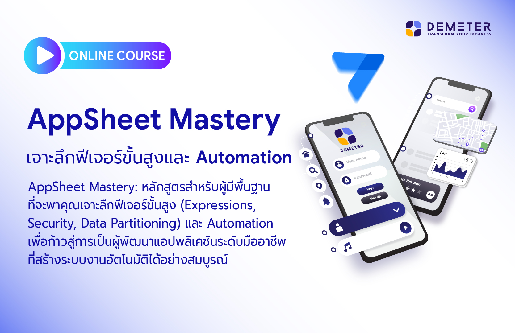 หลักสูตร AppSheet Mastery นี้ถูกออกแบบมาสำหรับผู้ที่มีพื้นฐานการใช้ AppSheet มาแล้ว และต้องการเจาะลึกถึงฟีเจอร์ขั้นสูงที่ช่วยให้แอปพลิเคชันของคุณมีความซับซ้อน ปลอดภัย และทำงานได้โดยอัตโนมัติ คุณจะได้เรียนรู้วิธีการสร้างแอปพลิเคชันที่ไม่ได้เป็นเพียงแค่แบบฟอร์มบันทึกข้อมูล แต่เป็น "ระบบงาน" ที่ขับเคลื่อนธุรกิจของคุณ